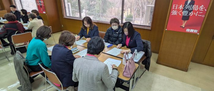 HOME > 女性局 > 女性局 未分類 女性局総務会 2026/01/23 前川收 県連会長挨拶 松田三郎 幹事長挨拶 馬場摩利子 女性局長挨拶 【1区】選挙区に分かれての会議 【2区】選挙区に分かれての会議 【3区】選挙区に分かれての会議 【4区】選挙区に分かれての会議 令和8年1月23日(金)10時30分より女性局総務会を開催し、今後の活動について協議しました。【第51回衆議院議員総選挙】自由民主党公認候補予定者#自民党 #熊本 #女性局 -女性局, 未分類 Twitter Facebook Google+ Pocket B!はてブ LINE