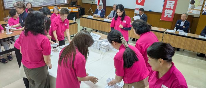 県連女性局の皆様で開票作業9時45分から行われ、11時に終了しました。