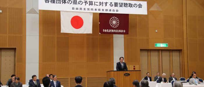 HOME > お知らせ > お知らせ 各種団体の県予算に対する要望聴取の会 2025/10/30 前川收 県連会長挨拶 吉永和世 政調会長説明 司会: 溝口幸治 政調会長代行 令和7年10月18日(土)8時30分よりホテル熊本テルサホールにおいて各種団体要望聴取の会を開催しました。 金子恭之 衆議院議員 坂本哲志 衆議院議員 西野太亮 衆議院議員 松村祥史 参議院議員 馬場成志 参議院議員 進藤金日子 参議院議員 藤木眞也 参議院議員 本田顕子参議院議員 -お知らせ Twitter Facebook Google+ Pocket B!はてブ LINE